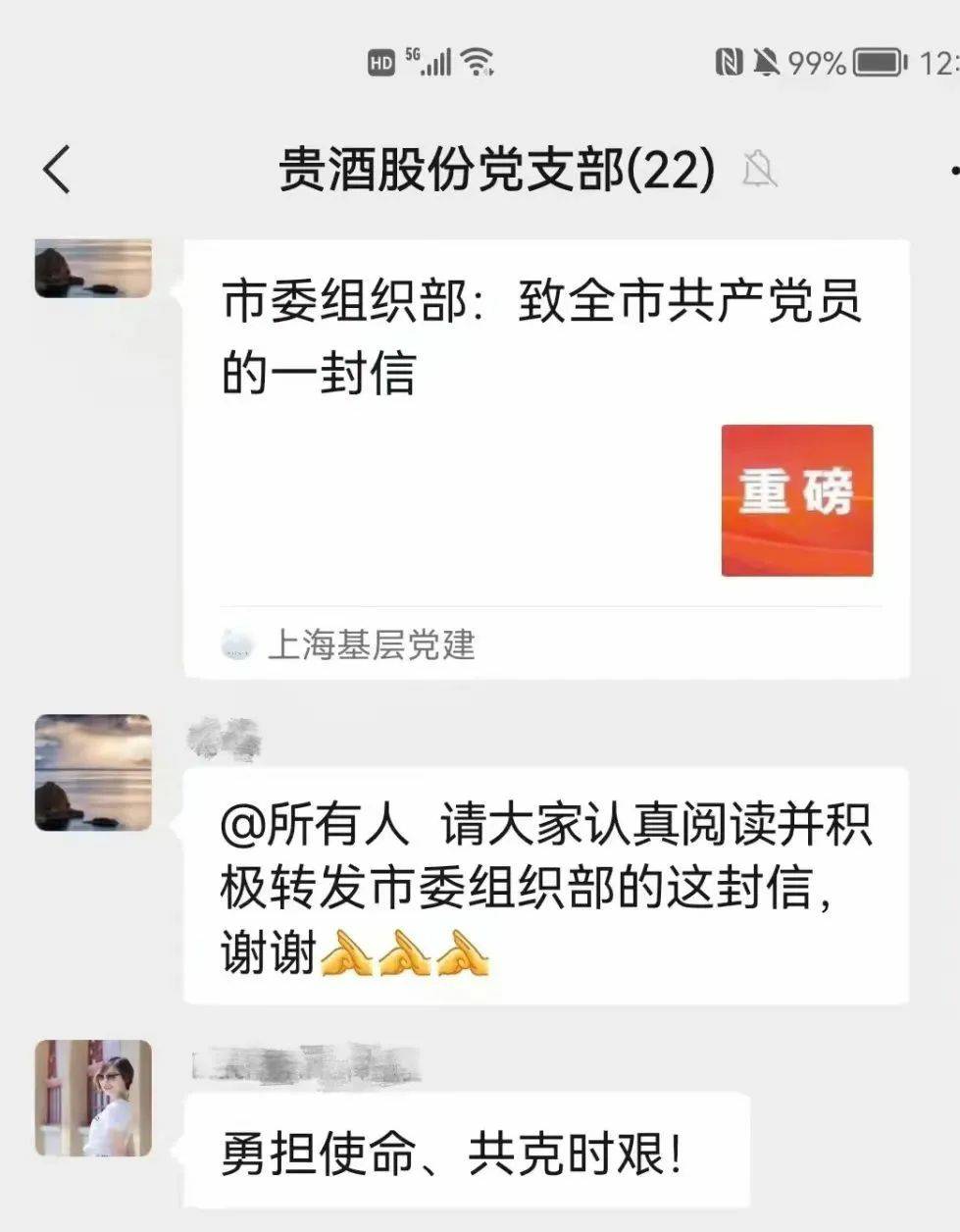 3月24日,上海市委组织部发出致全市共产党员的一封信,题为《在大战大考中彰显特殊责任、特殊担当》,号召全市党员坚决打赢疫情防控这场大仗硬仗。开云手机官方版页面登录入口-开云(中国)股份党支部党员连夜在支部群内学习信件内容,积极响应号召,决心在打赢疫情防控和企业发展两场硬仗中充分发挥党员担当和先锋模范作用。